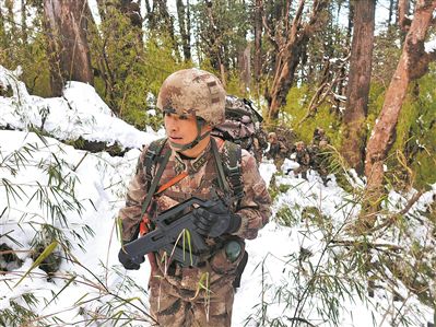 團長侯云走在隊伍的最前頭。任現職前,他曾兩次帶隊參加國際軍事比賽,征服過歐洲最高峰厄爾普魯士山,對登山很有經驗。當團長后,每次參加武裝巡邏,他都在前面開路。