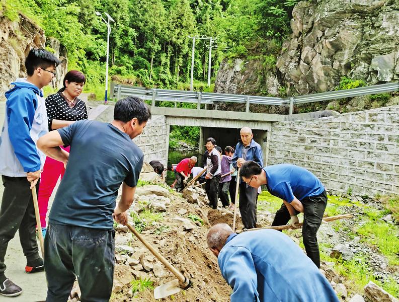 △5月27日,陜西省人社廳駐丹鳳縣武關鎮陽陰村扶貧干部發動群眾50多人,根據當地有利地勢開展引水工程,該工程的實施可解決全村45戶200多口人畜季節性干旱飲用水以及部分糧田抗旱問題。(鄭志財 攝)