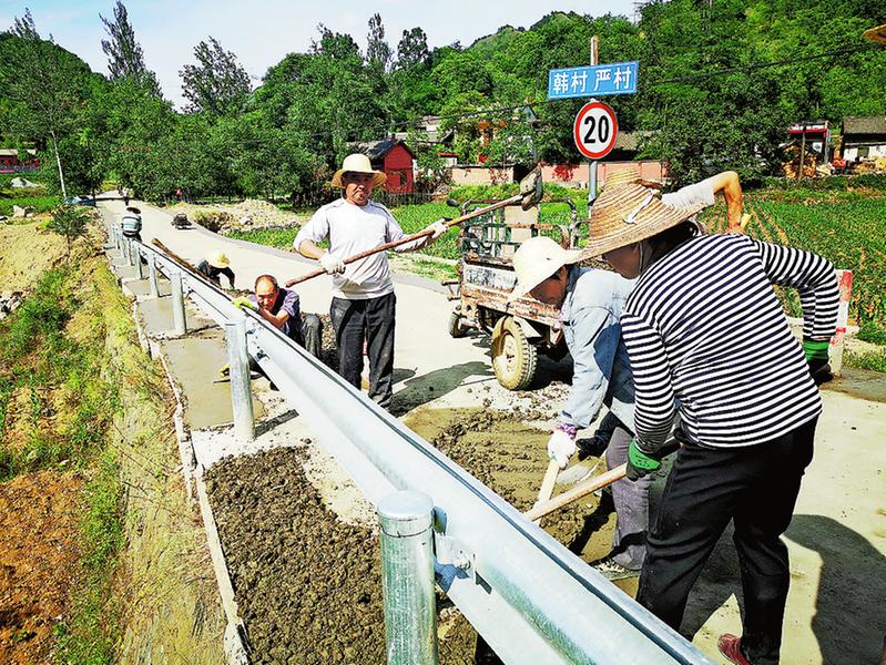 ?5月25日,在商州區板橋鎮韓村通村水泥路施工現場,工人們正在進行路面拓寬。據了解,本次將拓寬1.4公里的水泥路面,進一步保障村民出行安全。(記者王孝竹攝)
