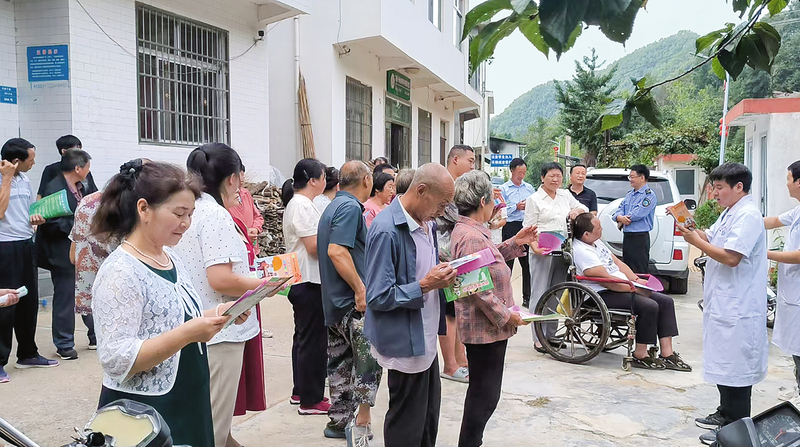 9月2日,丹鳳縣花瓶子鎮衛生院組織醫護人員通過發放宣傳彩頁、面對面講解等方式,向轄區群眾全方位普及健康知識,幫助群眾了解秋季傳染病預防知識,進一步增強群眾健康意識和自我保健能力。 (本報通訊員 馮皓玥 攝)