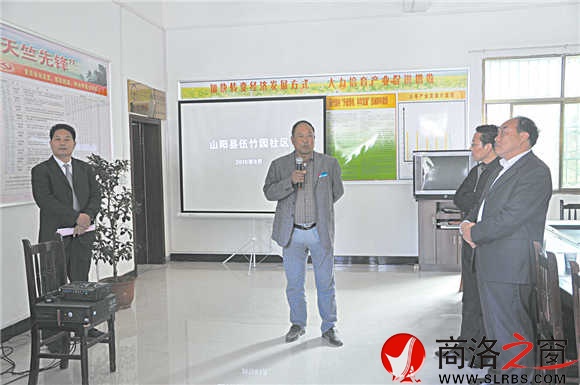 在山陽縣城關街道辦事處伍竹園社區,觀摩人員觀看了民主評議短片。