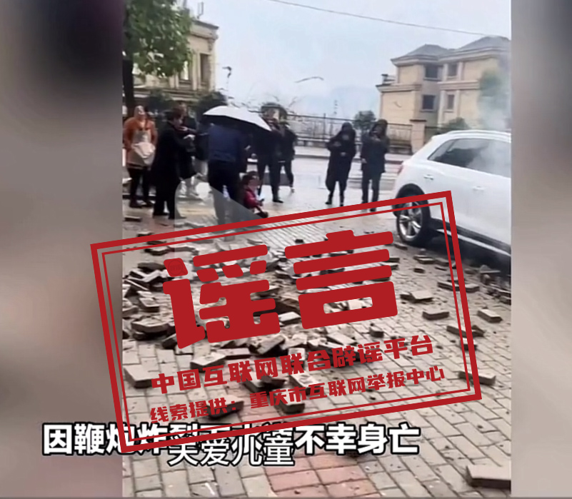 經相關部門核實,1月21日15時42分,重慶市萬州區(qū)陳家壩街道南濱上院小區(qū)居民黃某(男,9歲)與兩名玩伴(均未受傷)在小區(qū)門前空地玩耍時,將點燃的鞭炮丟入地面一下水道內,引燃沼氣掀翻井蓋,造成黃某頭部受傷及旁邊停放的一輛白色小轎車受損。隨后,黃某被送醫(yī)治療,已無生命危險。網傳“萬州一女童向污水道投擲鞭炮發(fā)生爆炸致一人死亡”信息為不實信息,目前,該視頻已刪除。(來源:“重慶辟謠”微信公眾號)