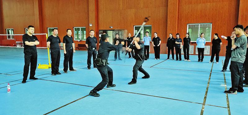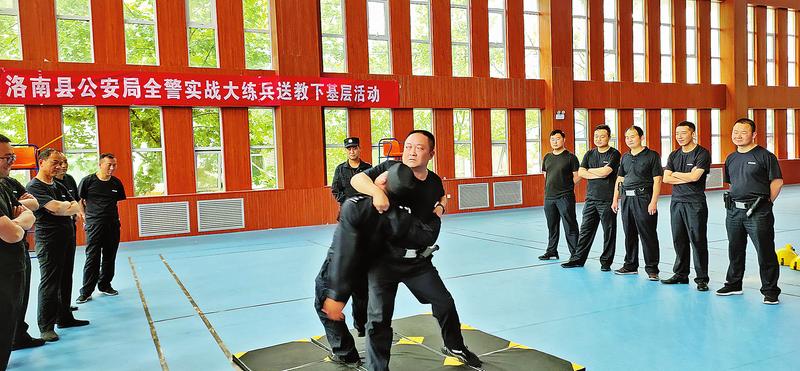 6月17日,洛南縣公安局城關派出所組織民警開展警務實戰練兵活動。教官從徒手防衛與控制、單警裝備佩戴、組裝、拆卸及使用、手槍規范操作、處警遇襲避險控制等方面,把理論傳授與實際操作相結合,從處警實戰及日常處警中接觸的警情入手進行認真講解,有效破解了基層民警在實際工作中遇到的難題。(石軍平 攝)