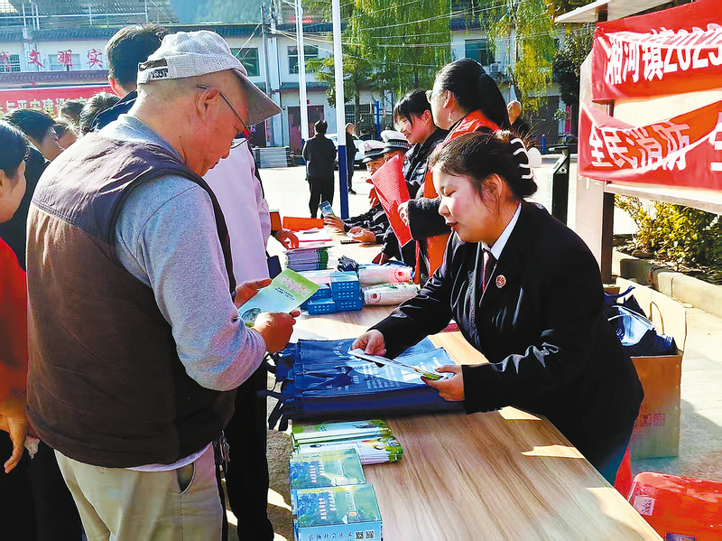 11月15日,商南縣檢察院組織干警到湘河鎮開展“零距離”平安建設宣傳活動,向群眾講解電信網絡詐騙防范技巧、養老詐騙常見手段、鄰里矛盾糾紛化解辦法等內容,進一步提升群眾的安全防范意識和能力。 (本報通訊員 吳 京 攝)