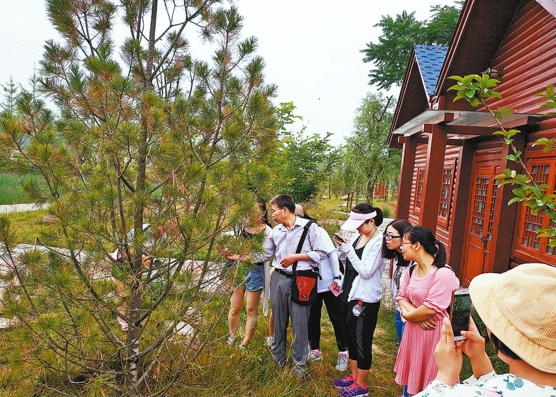 張孝存教授向?qū)W生講解商洛溫帶針闊葉混交林的生理特征