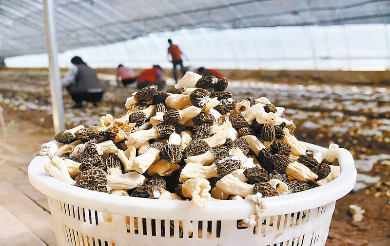 在蒿坪村的食用菌產(chǎn)業(yè)園里,豐收的羊肚菌甚是喜人。
